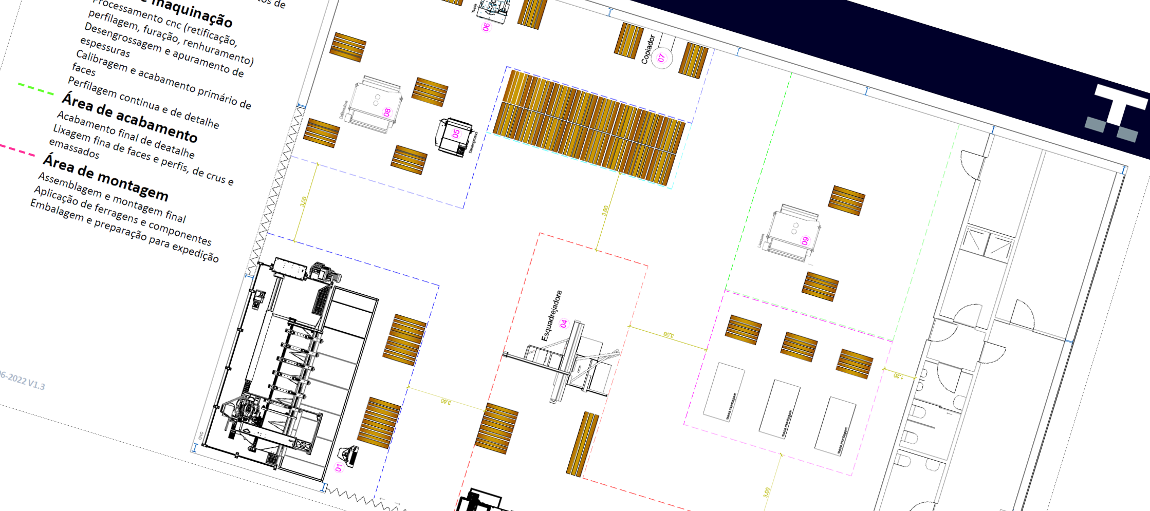 O correto dimensionamento e lógica funcional de uma fábrica de mobiliário ou carpintaria, dependem do conhecimento de todo o processo produtivo. Por outro lado, o atual sistema de simplificação dos processos de licenciamento industrial nas suas diversas tipologias com apertadas regras ambientais e de segurança no trabalho, determina os fatores a serem considerados na elaboração de qualquer layout produtivo. Tomando partido de quadros com mais de 30 anos de experiência no setor associados a técnicos especializados, a TETRIS Consulting conceptualiza layouts produtivos que combinam na perfeição fluxos de produção escorreitos e funcionais com os apertadas exigências dos processos rinais de Licenciamento de Atividade Industrial.