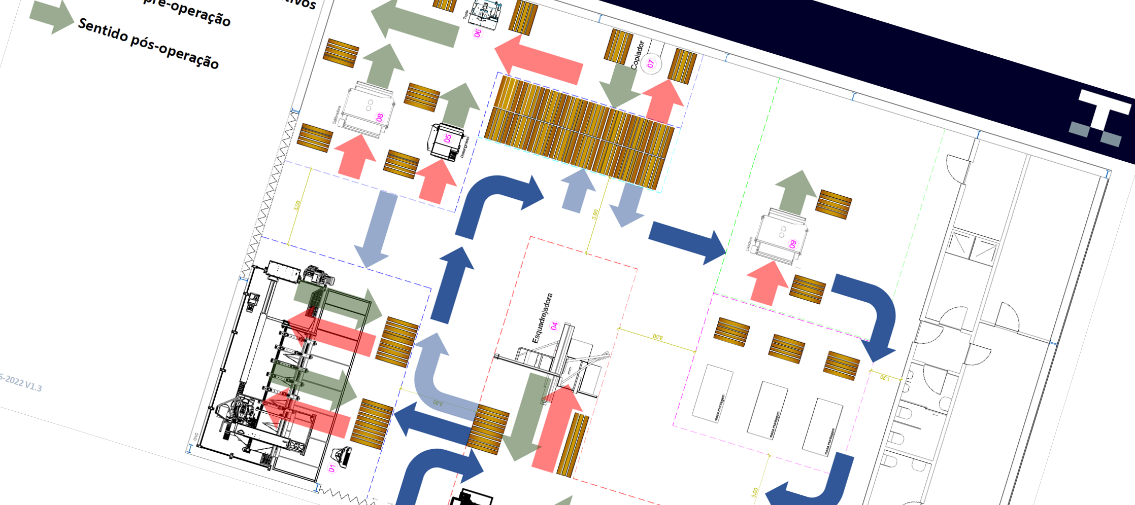 A importância dum layout de fluxos produtivos prende-se com a definição de uma lógica interna de funcionamento e de organização de todo o processo de fabricação. Saber quem faz o quê, para onde vai algo ou onde fica, reduz a probabilidade de erros, otimiza a ocupação de espaços e racionaliza a utilização de meios, promovendo a majoração dos níveis de produtividade da estrutura. Auscultando todos os intervenientes no processo e percebendo os passos e a lógica de fabricação, a TETRIS Consulting desenvolve este tipo de estudo de forma dinâmica e com realismo.